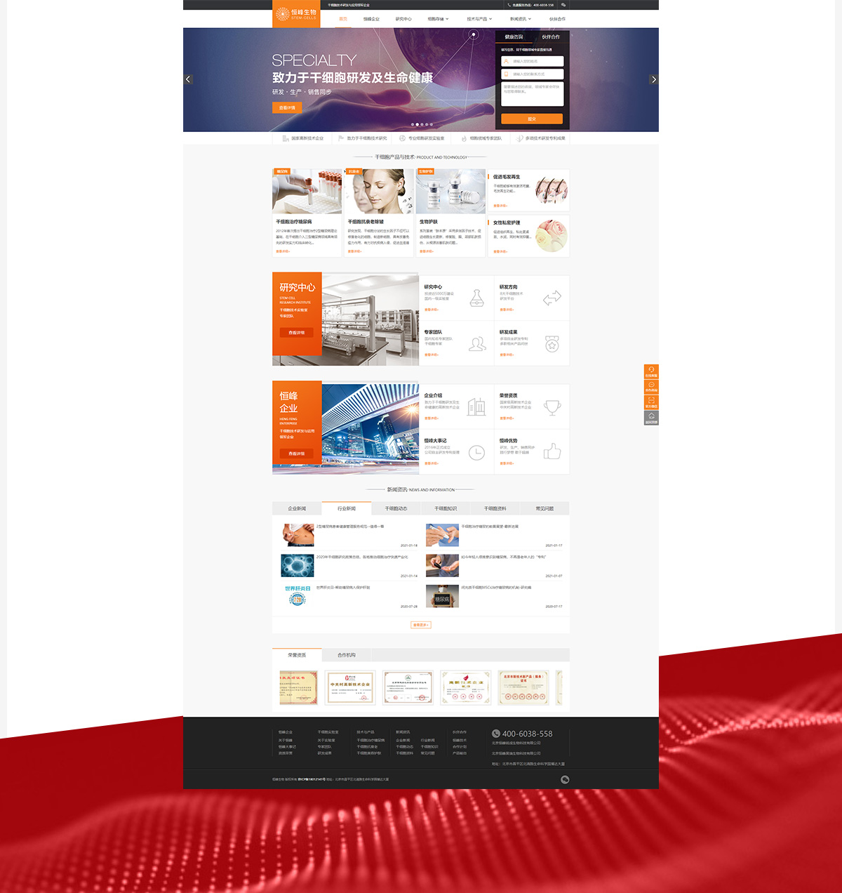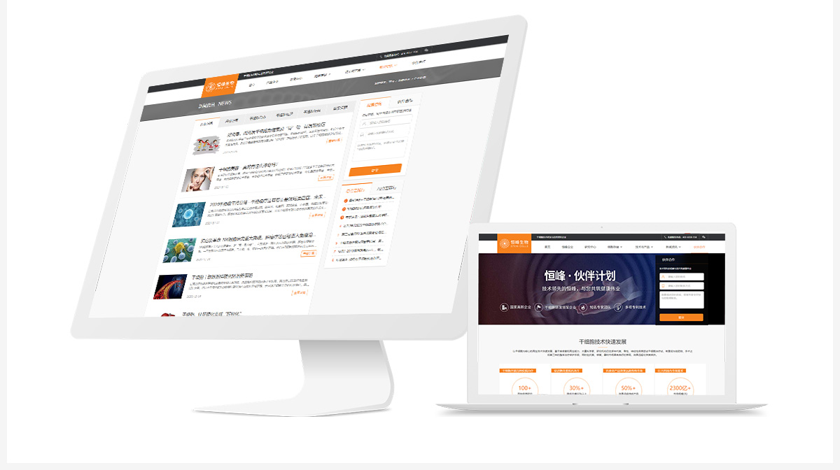 恒峰生物網站建設項目有PC網站和手機網站,因網站欄目較多,專題頁和內容較多,所以PC網站和手機網站沒有采用自適應方式,采用分別設計頁面、分別用不同的制作技術,手機網站和PC網站不同網址。